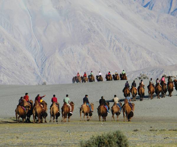 Explore the dramatic landscapes of Ladakh with high mountain passes, crystal-clear lakes, sand dunes, and